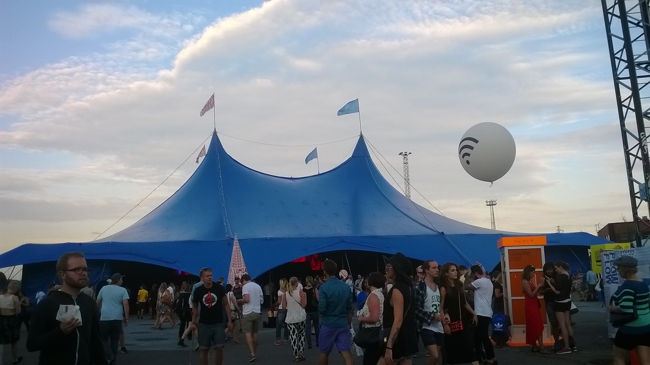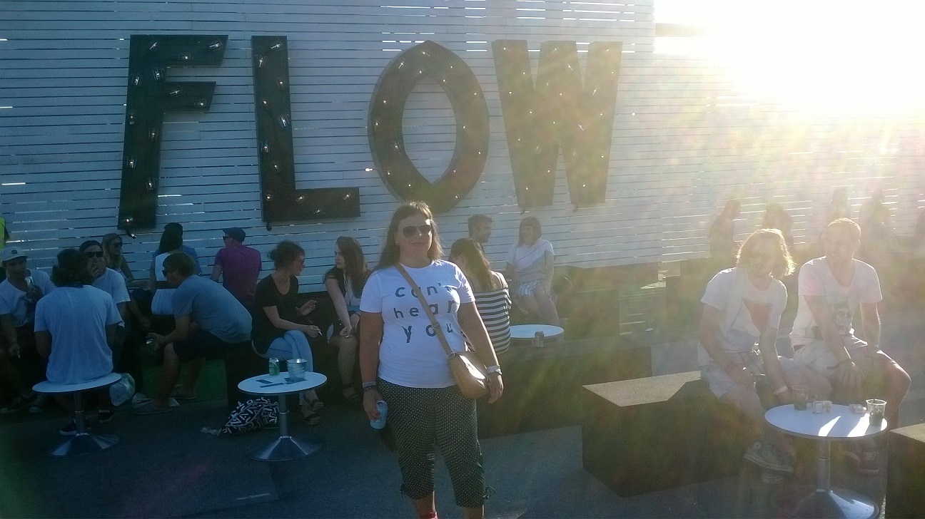 Olen ollut Flowssa kaksi kertaa aikaisemmin: vuonna 2009 talkoolaisena lipunmyyntitehtävissä ja viime vuonna Sylvi-verkkolehden toimittajana. Pääsin tänä vuonna varasijalta aluevisualisointiin, jossa olin yhden päivän ennen festareita sekä tänään ja vielä huomenna. En halunnut tänä vuonna työskennellä itse festareilla. Kolmea työpäivää vastaan saa kolmen päivän rannekkeen (arvo 159 euroa), festaripaidan sekä työpäivinä pari välipalaa ja laadukkaan lämpimän aterian.