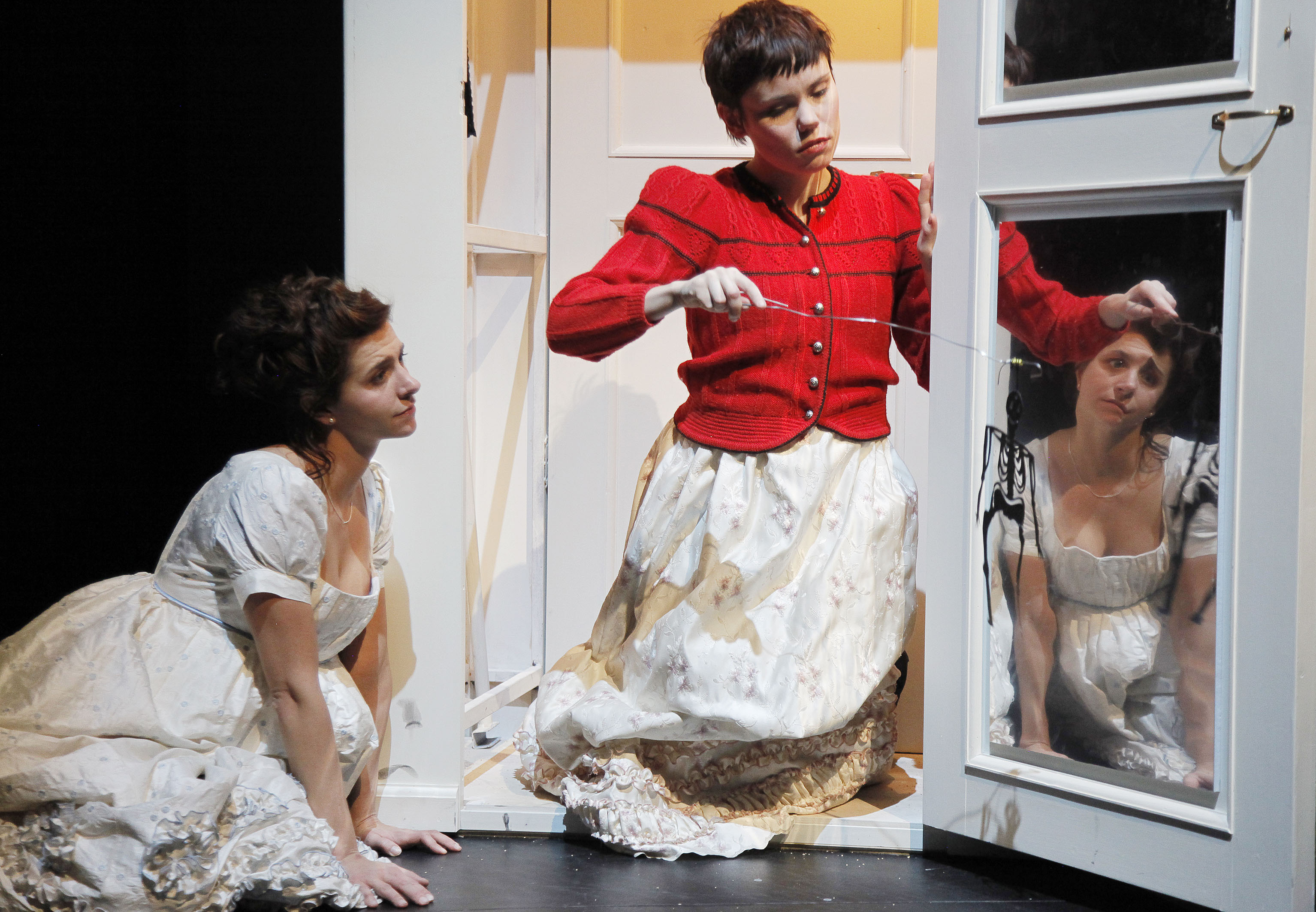 Kreeta Salminen tekee hienon roolin Elinorina. Pakan räjäyttää todella Sara Mellerin yhtä aikaa herkkä ja voimakas roolisuoritus Mariannena. Tyttöjen äitinä, rouva Dashwoodina näytteli näkemässäni näytöksessä Heidi Heralan sijasta komedianne Eija Vilpas, joka teki mehukkaan roolin hieman höpsönä mammana. Toisen pölhön ihanan roolin tekee Leena Uotila rouva Jenningsinä, tyttöjen vauhdikkaana tätinä.