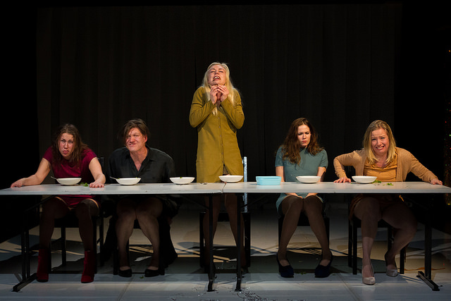 Näyttämöllä: Annika Aapalahti, Anne-Mari Alaspää, Niina Hosiasluoma, Timo Ruuskanen, Henna Tanskanen ja Pihla Viitala