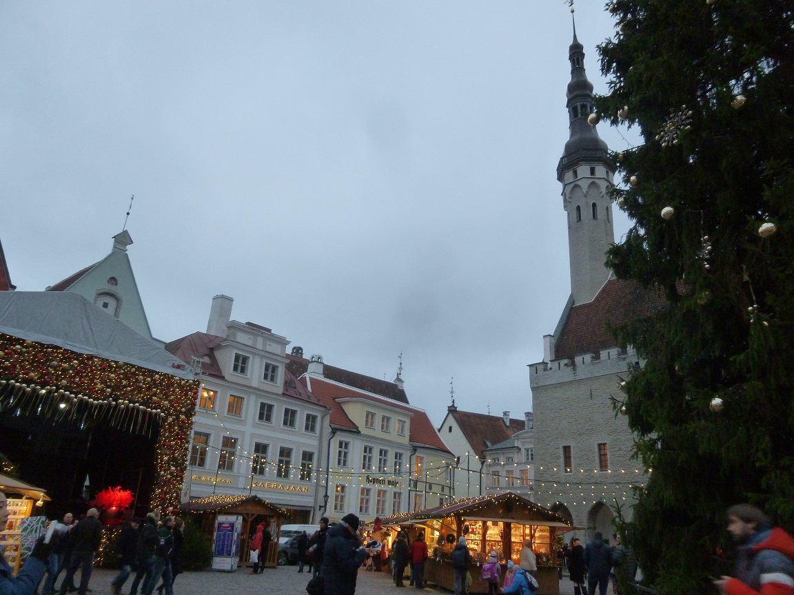 Jatkoimme vanhaan kaupunkiin joulutorin avajaisiin Raatihuoneenaukiolle. Menimme joulutorin ohi uudestaan illalla, jolloin joulukuusi valaistiin ja valot syttyivät kojuihin.