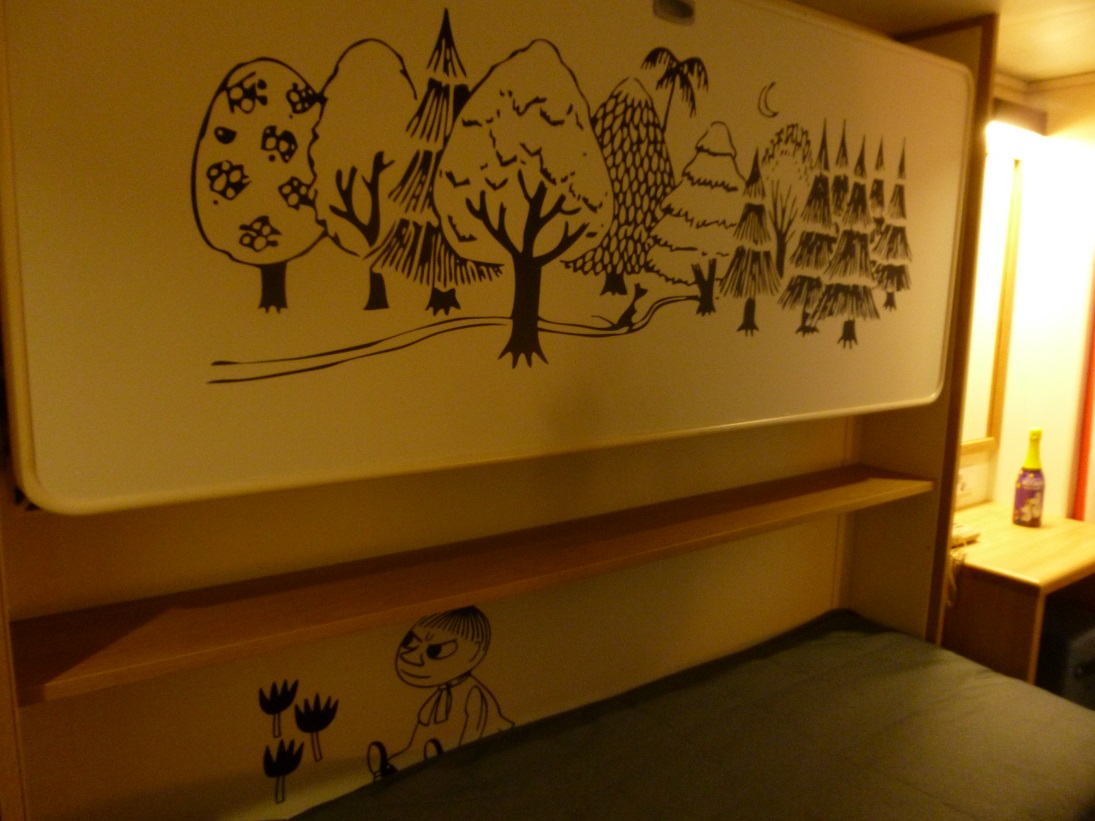 4. DeLuxe-hytit ja Muumi-perhehytit ovat saaneet uudet sisustukset. Ihmettelin jo kolme vuotte sitten risteilyllä DeLuxe-hytin mukavaa parisänkyä. Olen tottunut laivoilla kerrossänkyihin, joissa lyö päänsä. Huoneissa on myös pehmoiset divaanit tai nojatuolit sekä televisiot. Uutta ovat puiset lattiat! DeLuxe-hytteihin tilavuutta luo myös uudistus, jossa vaatekaapit on korvattu naulakoilla. Jos taas tahdot parvekkeen merelle, varaa Commodore-hytti. Tahtoisin majoittua söpössä Muumi-perhehuoneessa, vaikkei minulla lapsia olekaan, heh.