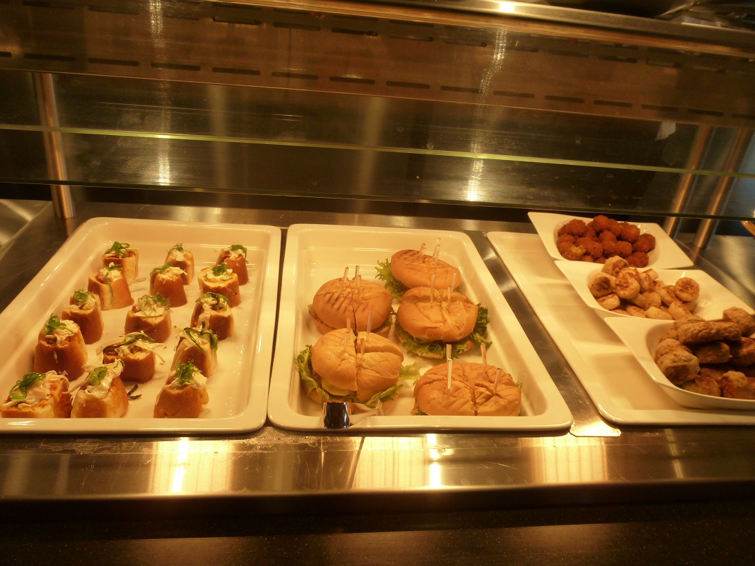 1. Toisin kuin ravintolan nimi tuntuu vihjaavan, Promenadella sijatsevassa Fast Lane -ravintolassa annokset tehdään uudistuksen myötä alusta asti itse. Fast Lane sopii niille, jotka eivät halua mennä laivan buffetiin tai eivät jaksa odottaa annoksia laivan muissa ravintoloissa. Fast Lanessa annokset valmistuvat hetkessä. Listalta löytyy wokkeja, hot dogeja, hampurilaisia, fish&chips, liha-, kala- ja falafel-pyöryköitä dippien kanssa sekä salaatteja. Saimme maistiaisia annoksista, ja hyviä olivat!