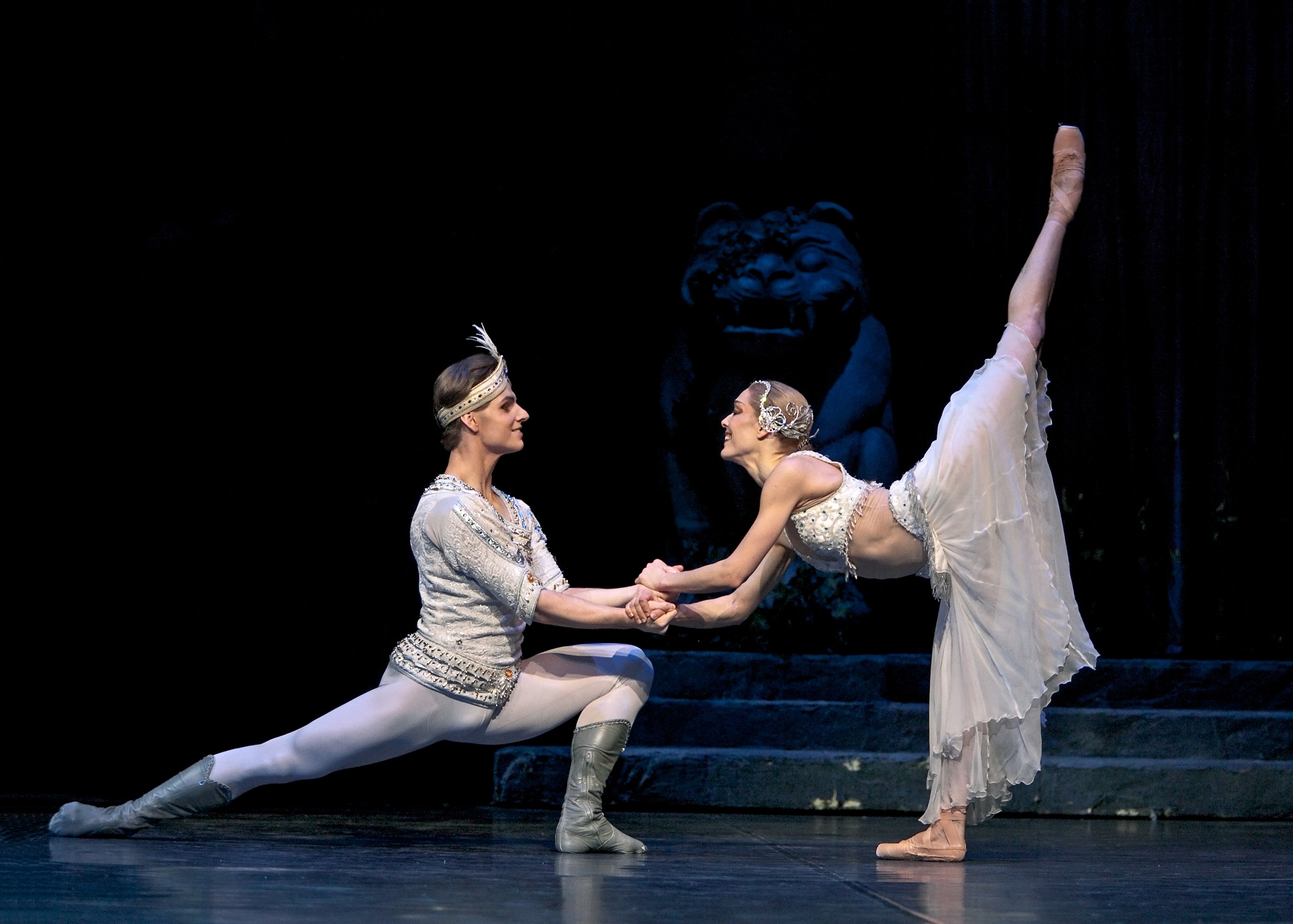Ensimmäisen näytöksen kihlajaiskohtauksessa taas nähdään taiturimaisia sooloja kuten Solorin esittäjä hyppimässä ympäri lavaa. Keskiviikkona roolissa oli ukrainalainen vieraileva tanssija Denys Nedak, jonka muhkeita reisilihaksia voi vain hämmästellä. Yleisö taputti hänelle raivokkaasti, samoin Nikiyan roolissa olleelle tähtitanssija Salla Eerolalle ja Gamzatin roolissa olleelle bulgarialaiselle solistitanssijalle Desislava Stoevalle, joka pyöri huikaisevan määrän piruetteja. Kolmannen näytöksen aloittava Pronssijumalan itämaishenkinen soolo temppelissä oli myös vaikuttava ja keräsi yleisöltä paljon suosionosoituksia.