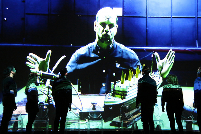 Kokeellisen tyylin takana on näytelmän ohjaaja ja käsikirjoittaja Akse Pettersson, joka muistetaan vuoden 2014 kohutusta teatteritapauksesta Kasper Hauser (itse en valitettavasti onnistunut saamaan lippua loppuunmyytyyn Kasper Hauseriin). Pettersson on vain hieman opiskelijoita vanhempi, 31-vuotias, ja on valmistunut samaisesta Teakista vuonna 2011. Titanicissa on mukana muukin Kasper Hauserin työryhmä eli lavastaja ja videosuunnittelija Ville Seppänen ja muusikko Kasperi Laine.