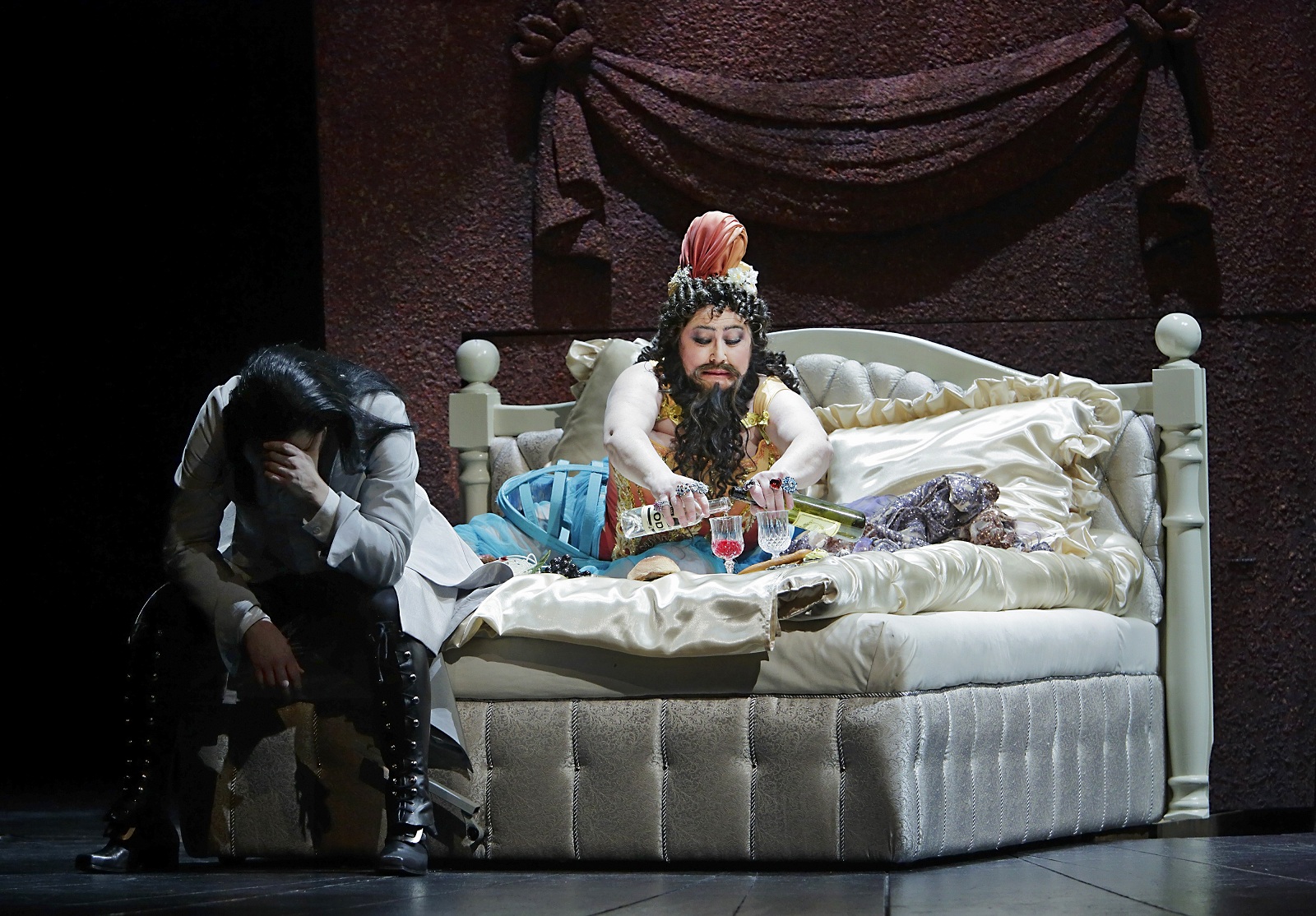 Kävin katsomassa oopperan pressilipuilla bloggaaja Lady Dandyn kanssa viime lauantaina. Onneksi seuralaiseni oli itseäni tarkempi, koska olisin saapunut oopperalle vasta illalla, vaikka näytös alkoikin jo klo 12.00! Oli hauska tapa aloittaa aurinkoinen lauantaipäivä ponkaisemalla lähes suoraan sängystä oopperalle. Tämän oopperan hekumalliset juhlakohtaukset sopisivat tosin paremmin koettavaksi illan pimeydessä, mutta toisaalta olin ainakin itse tavallista virkeämpi katsomossa päiväsaikaan.