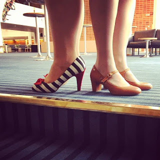 Poikaystäväni ihmetteli kirjan nimeä Korot kopisten. Miten nimi liittyy kulttuuriin? Itse päättelin, että nimi tulee siitä kun moni nainen pukee kulttuuritapahtumiin korkokengät, blogikuvien perusteella myös kirjan kirjoittajat. Onhan kulttuuri usein jotain harmaan arjen yläpuolella olevaa ja siihen liittyy myös vahva sosiaalinen puoli: muiden kulttuurinystävien tapaaminen. Lisäksi onhan toisen kirjoittajista sukunimi Jalkanen!