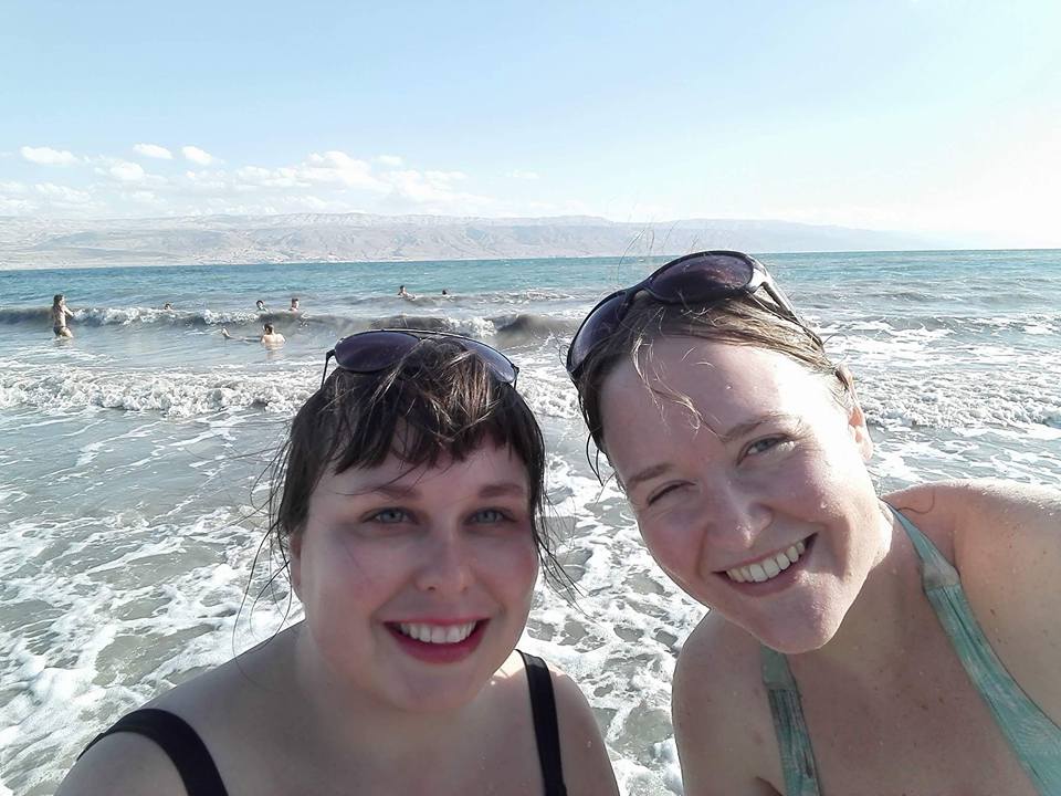 Kuolleessameressä oli tällä kertaa niin kovat aallot, että kelluminen oli yllättävän vaikeaa. Lisäksi rantavesi ylettyy pitkään vain sääriin asti. Mutta oli hauskaa ja virkistävää kellua! Valitettavasti yksi aalto heitti mut rantakallioille niin että sain toiseen pohkeeseeni vertavuotavat haavat enkä päässyt enää uimaan toista kertaa (suolaa haavoihin…).