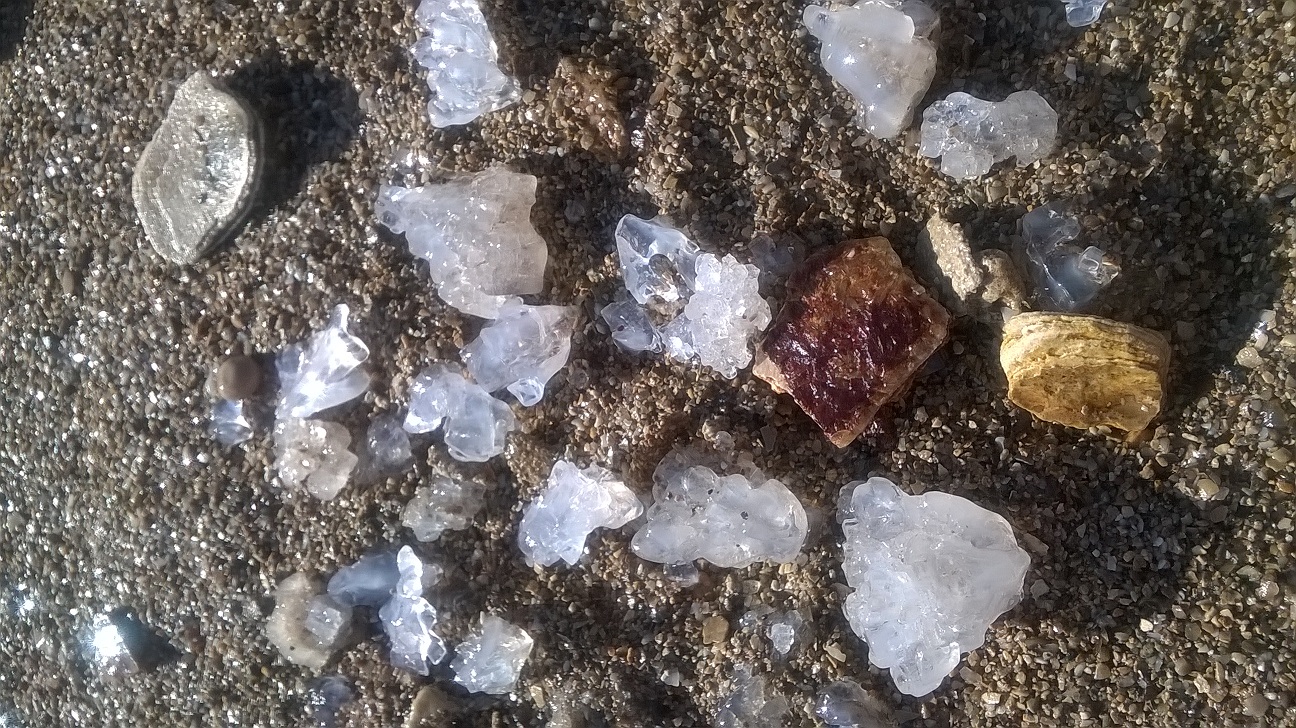 Kuolleellamerellä saimme oppaaltamme pyyhkeet, vaihdoimme pukuhuoneessa päälle uima-asut – ja ei kun biitsille! Merivesi oli mukavan lämmintä, ja hiekkarannalla oli veden rajassa kauniita läpinäkyviä suolakiviä.