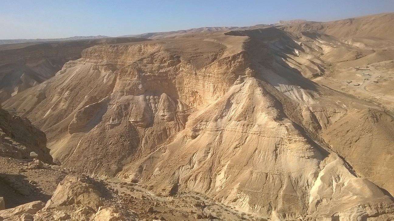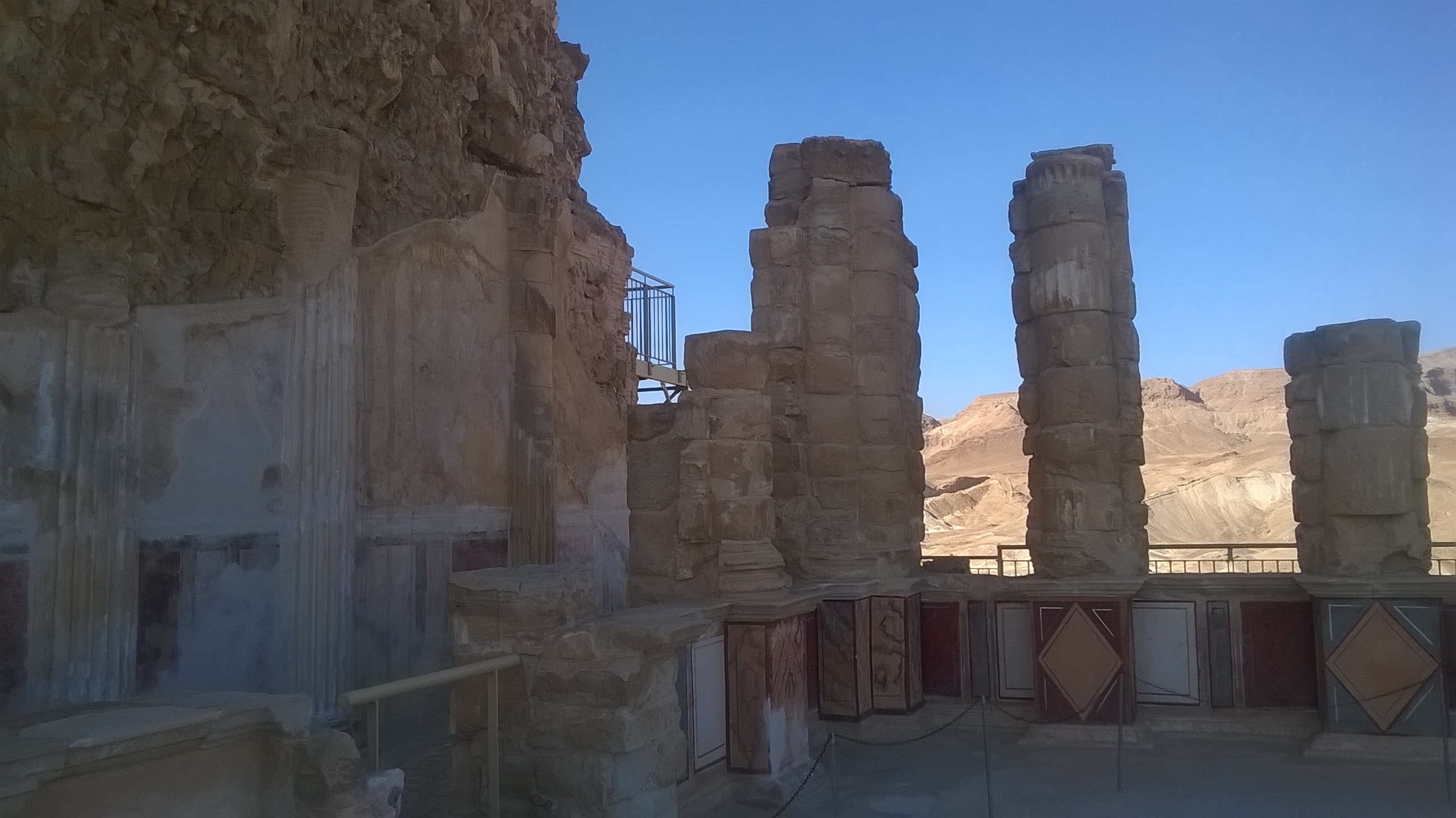 Meitä oli minibussissa kansainvälinen joukko ja opastus oli englanniksi. Matkasimme läpi autiomaan Masada-vuorelle. Parin tunnin matka vuorelle meni nopeasti maisemia katsellessa ja jutellessa. Jerusalemissa hytisimme kylmästä, mutta nyt saattoi jo huoletta jättää takin bussiin.