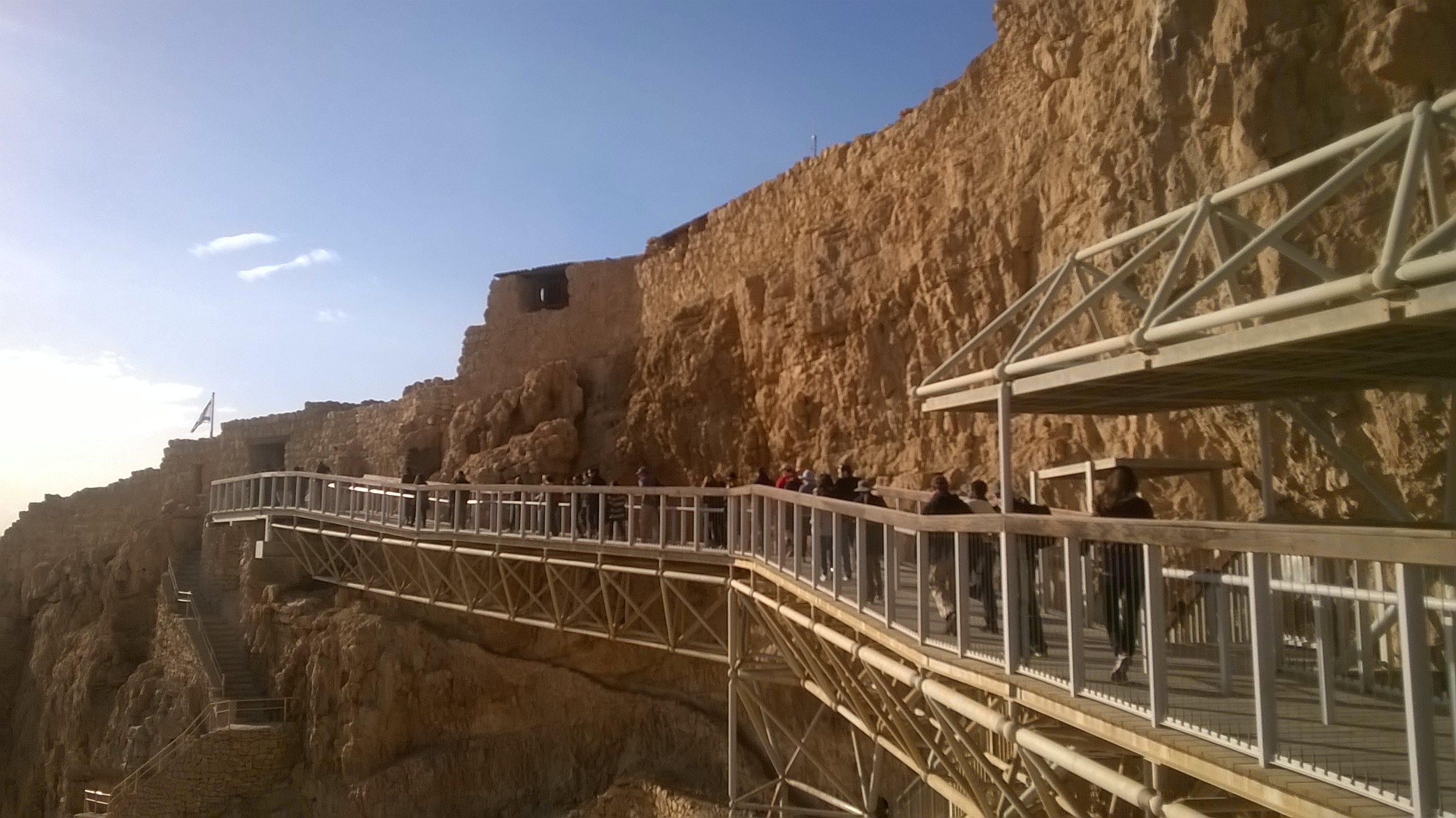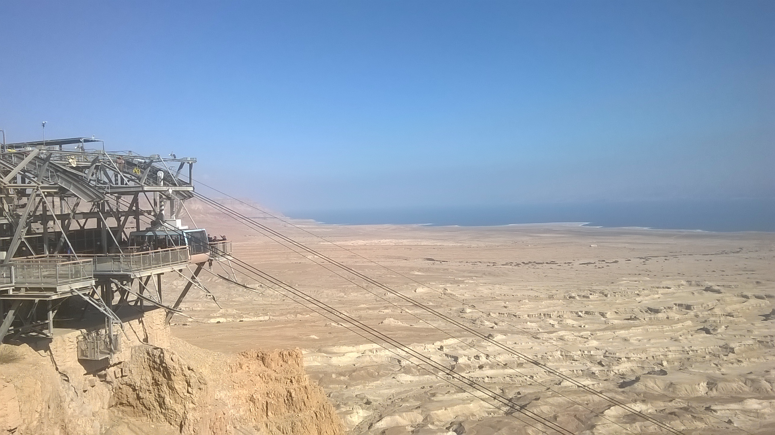 Masadalla meillä oli omaa aikaa puolitoista tuntia. Menimme Hannan kanssa ensiksi turistikeskukseen ostamaan liput kaapelihissiin ja katsomaan 10 minuutin videon vuoren historiasta. Vuoren huipulle voi myös maksutta kävellä ”käärmepolkua”, ja kipuaminen kuulemma kestää noin tunnin.