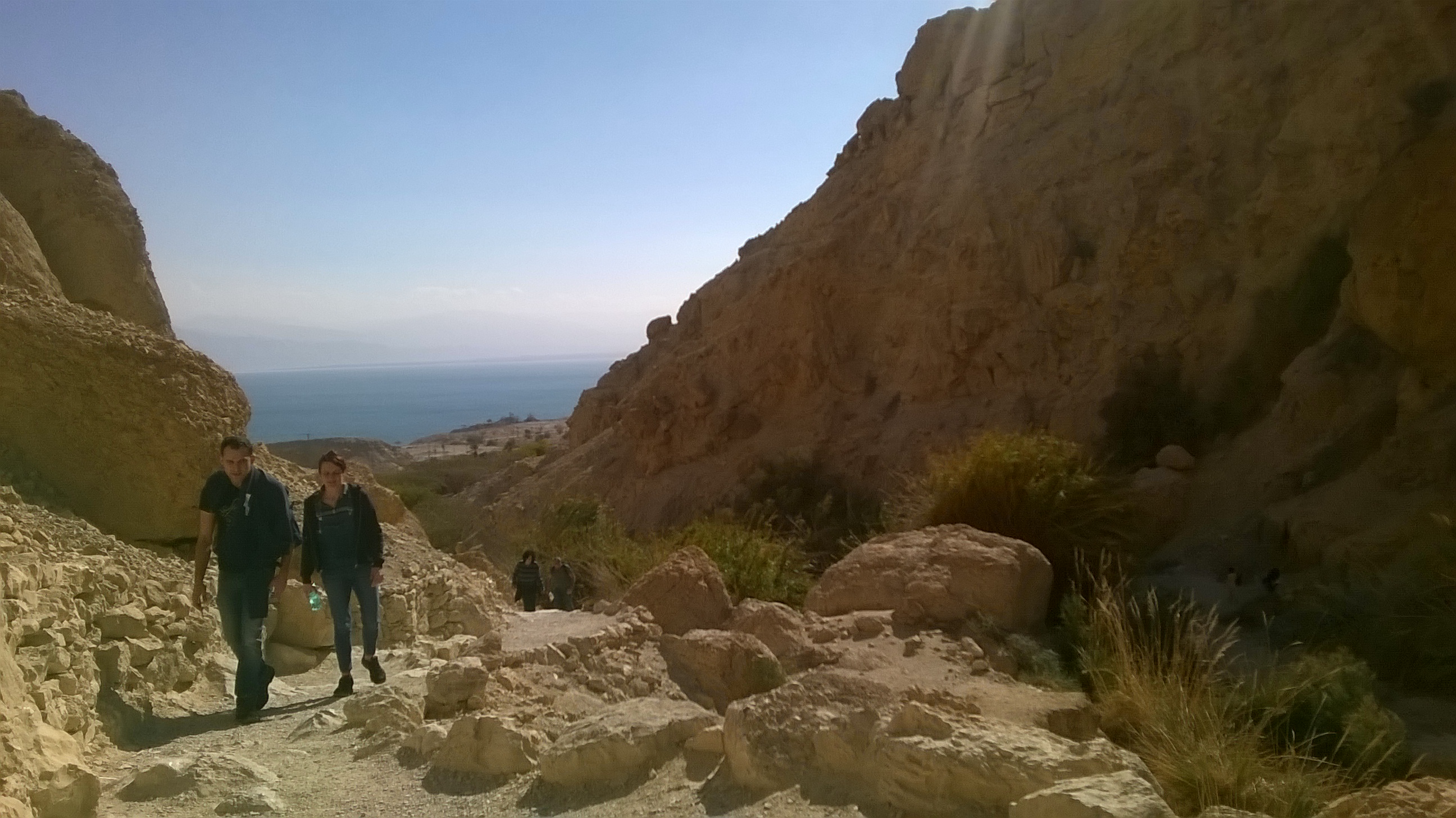 Matkamme jatkui Ein Gedin luonnonpuistoon, joissa saimme mennä omia aikojamme. Nyt oli jo t-paitakelit! Luonnonpuistossa oli hauskoja ja haastavia polkuja, joissa kipusimme ylös alas pitkin vuoren rinnettä, hyppelimme puron yli kiveltä kivelle ja kuljimme luolassa. Näimme myös hienoja vesiputouksia.