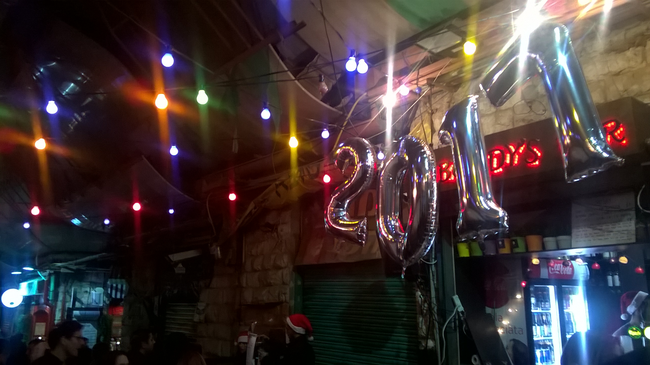 Meille oli hostellissa sanottu, ettei Jerusalemissa ole illalla kaupungin järjestämiä uuden vuoden juhlia, koska juutalaista uutta vuotta Rosh Hashanaa vietettiin jo lokakuussa. Juutalaiset elävät muutenkin meihin nähden tulevaisuudessa, sillä heillä alkoi jo vuosi 5778. Hostellin työntekijät neuvoivat meitä silti menemään Mahane Yehuda -kauppahalliin, jossa olisi illalla uuden vuoden bileet. Täytyy muistaa, että Jerusalemissa asuu muitakin ihmisiä kuin juutalaisia.