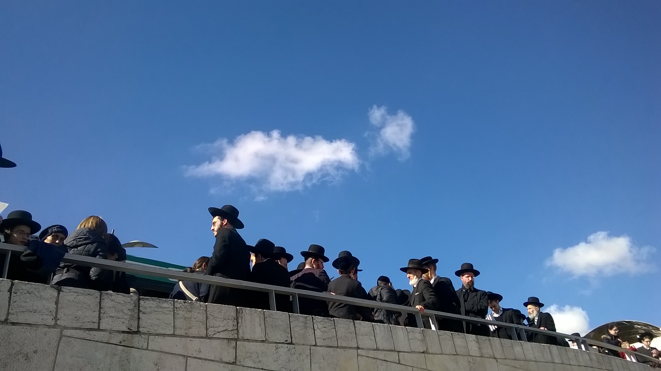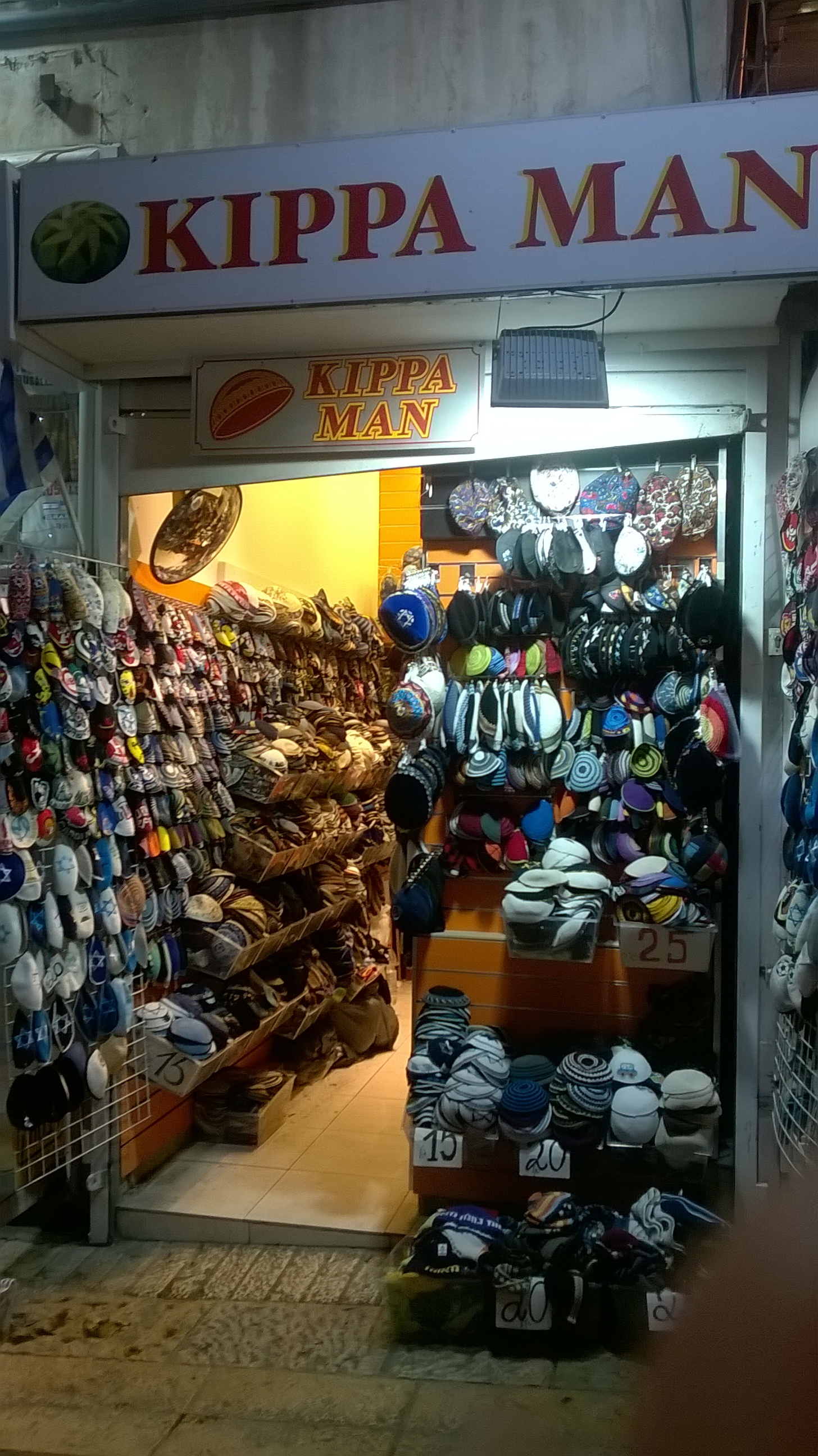 Jerusalemin erikoislaatuisuus tulee esiin heti kun kaupunkiin saapuu: kadut ovat täynnä juutalaisia poikia ja miehiä kipat päässään ja valkoiset tupsut housunvyötäröltä roikkuen. Ortodoksijuutalaisilla miehillä on pitkät mustat takit, suorat musta housut henkseleillä ja mustat lierihatut. Hanukan takia monella miehellä oli päässään valtava, lieriön muotoinen karvalakki.