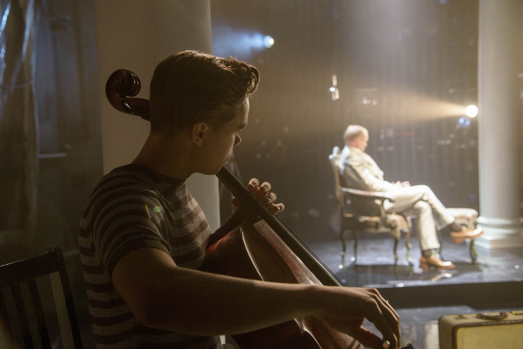 Näytelmässä oikein mehustellaan kauniilla kielellä ja kuvilla. Sekä tunnelmallisella musiikilla! Lavalla kuullaan elävää musiikkia kun lahjakas Artturi Aalto soittaa selloa. Nuori mies edustaa Tadziota.