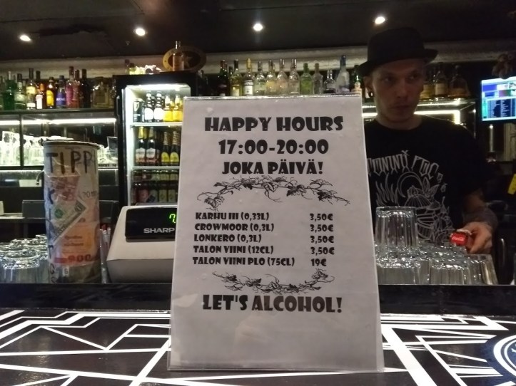 Saimme kierroksen ansiosta baareista alkoholijuomia erikoishinnoilla (melkein kaikkialla juoman sai 3-5 eurolla) ja suosituksia baarien omista erikoisjuomista.