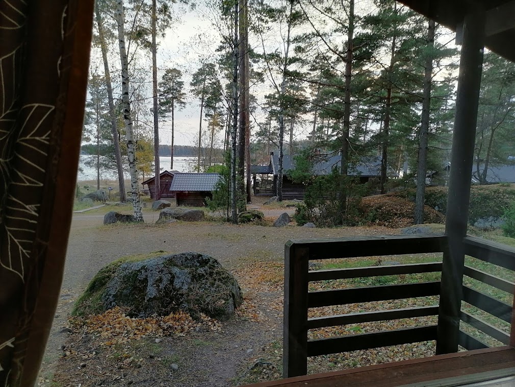 Muuten mökki oli viehättävästi sisustettu, erinomaisen siisti ja hyvin varusteltu. Sijaintikin oli kätevä mäen päällä, aivan saunojen ja uimarannan lähellä. Nukuin makeasti hiljaisessa mökissä, hyvällä vuoteella.