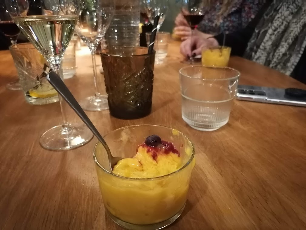 Torin ruokalistalla on Välimeren makuja, laadukkaasti toteuttaen. Me saimme yllätysmenun, joka oli matkamme hyvinvointiteeman ansiosta kokonaan vegaaninen. Aluksi saimme pienet sienipitsapiirakat tervehdyksenä kokilta. Alkuruuaksi oli kanttarellikeittoa tryffeliöljyllä ja focaccia-leipäpalat. Pääruuaksi söimme söpöistä pikkupadoista moussakaa. Jälkiruuaksi oli sokeritonta mango-sorbettia hillolla ja mustikoilla. Sain myös alkujuomaksi makean persikkadrinkin rommilla ja ruuan kanssa valkoviiniä ja soodavettä. Kaikki oli todella herkullista ja palvelu asiantuntevaa, ystävällistä ja ripeää!