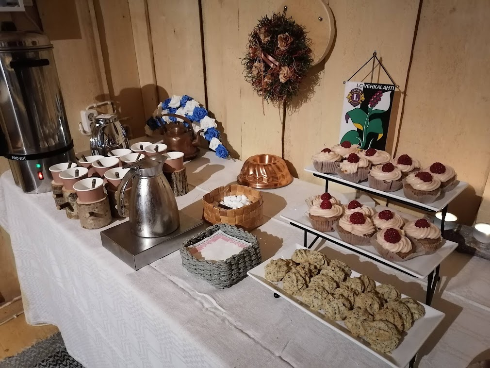 Pressimatkamme viimeinen kohde oli Aholafarm Haminassa. Entistä maatilaa pyörittävät pariskunta Tuula ja Jukka Ahola nykyisin tapahtumapaikkana. Farmilla voi järjestää esimerkiksi kaveriporukalle illanvieton, erilaisen palaverin tai työporukalle tyky-päivän. Me pääsimme ensiksi pihapiirin laavulle nauttimaan nokipannukahvit ja itseleivotut pullat.