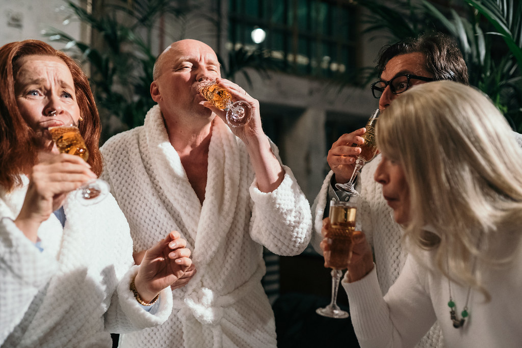 Pääsin viime viikon perjantai-iltana jälleen uuden Vallilan Kansallisteatterin rouhean loisteliaaseen miljööseen. Tehdasmaista hallia pehmittävät viherkasvit ja keltaiset sohvat sekä säihkettä tuovat kristallikruunut. Kiiruhdin läpi rankkasateen, ja ehdin istumaan saliin juuri ja juuri paria minuuttia ennen kuin näytös alkoi. Onneksi avecini Paavo ehti paikalle hieman mua aiemmin, ja piti meille paikkoja eturivissä.