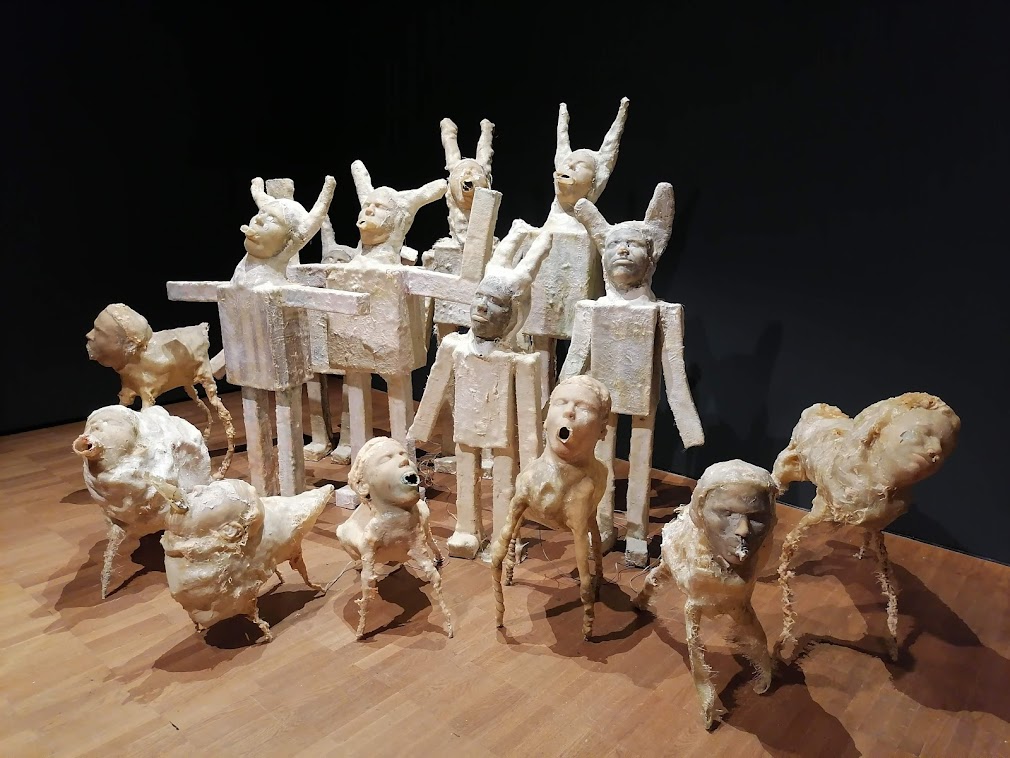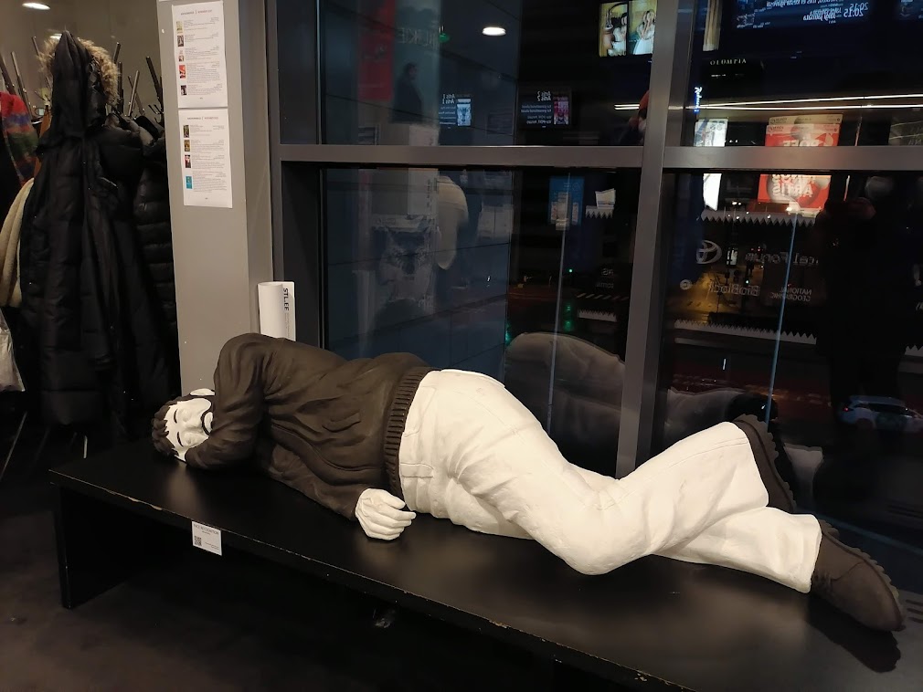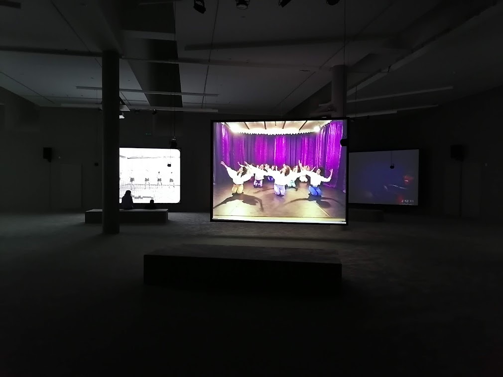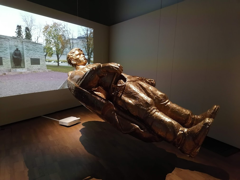Ehdimme elokuvien lisäksi käydä museoissa. Hurautimme edullisella taksilla Kumuun katsomaan koko viidennen kerroksen täyttävän vaihtuvan näyttelyn Taidetta mukavuusalueella? 2000-luku Viron taiteessa (9.10.2022 asti). Siellä oli paljon poliittista, ihan kiinnostavaa virolaista nykytaidetta viimeisen 20 vuoden ajalta. Kumussa olisi ollut useampi näyttely, mutta tuo Mukavuusalueella-näyttely vei jo paljon aikaa, ja perusnäyttelyt olemme nähneet useamman kerran. Kävimme siksi lisäksi Kumussa vain Reval Cafessa ja katsomassa Berliinissä työskentelevän taiteilijan Jeremy Shaw’n video-, ääni- ja valoinstallaation Phase Shifting Index (20.2.2022 asti). Seitsemälle isolle screenille on heijastettu tulevaisuuden kuvitteellisia alakulttuureja. Näyttely ei ole niin hauska kuin miltä se kuulostaa, mutta olihan se kiinnostavaa nähdä jo kokonsa vuoksi.