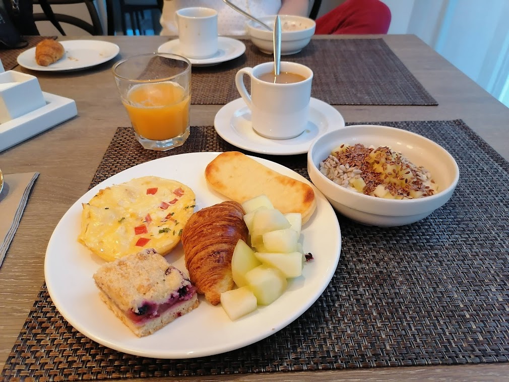 Hotellin ainoat paikat, missä oli ruuhkaa, olivat Pöffin infopiste aulassa ja buffetaamiainen. Aamiaisella oli tarjolla mm. erittäin hyvää leipää, lettuja ja kananmunaa vaikka missä muodossa sekä virolaisia erikoisuuksia, kuten jonkinlaista rahkaleipomusta ja paistettuja tomaatteja.