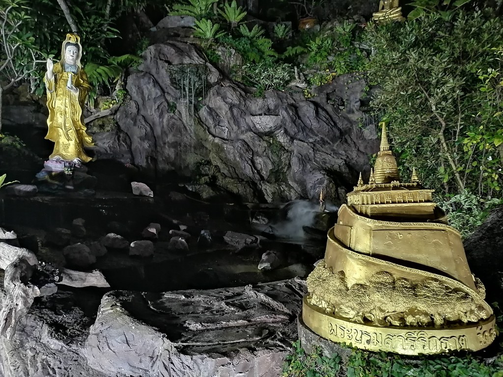 Joudut kipuamaan vuorenrinnettä 318 porrasta päästäksesi temppeliin. Porrasreitti on upea, koska sitä reunustavat vehreät kasvit, veistokset ja vesilähteet, ja tunnelmaa luovat myös portaille ruiskutettu vesihöyry ja kovaäänisistä kuuluva munkkien laulu tai muu hartaushetki.