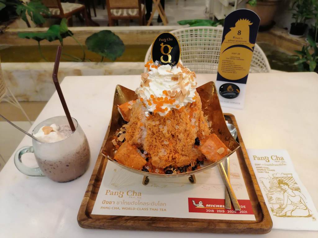Tämä herkku on päässyt Michelin oppaaseen jo neljänä viime vuotena. Voit valita thaimaalaisen maitoteen, minkä tarjoilija kaataa edessäsi hienoksi siivilöidyn jään päälle. Jättimäinen jälkiruoka sisältää myös neliön muotoisia pullanpaloja, kermavaahtoa, mantelilastuja ja poksuvia hillopalloja. Nam nam!