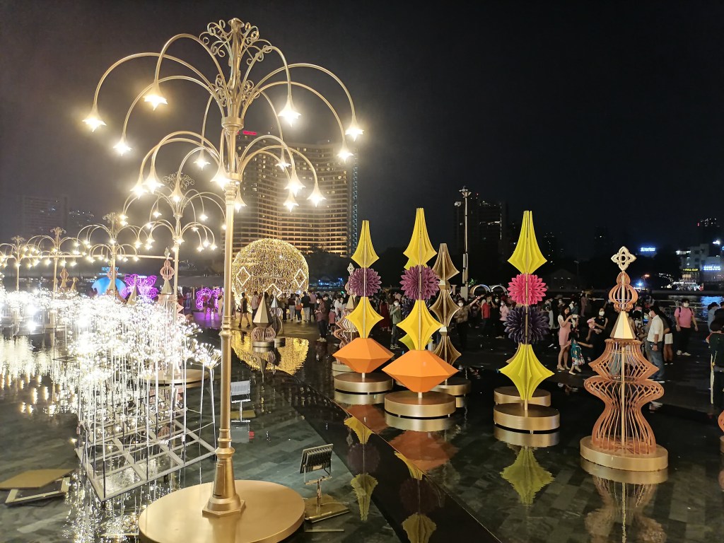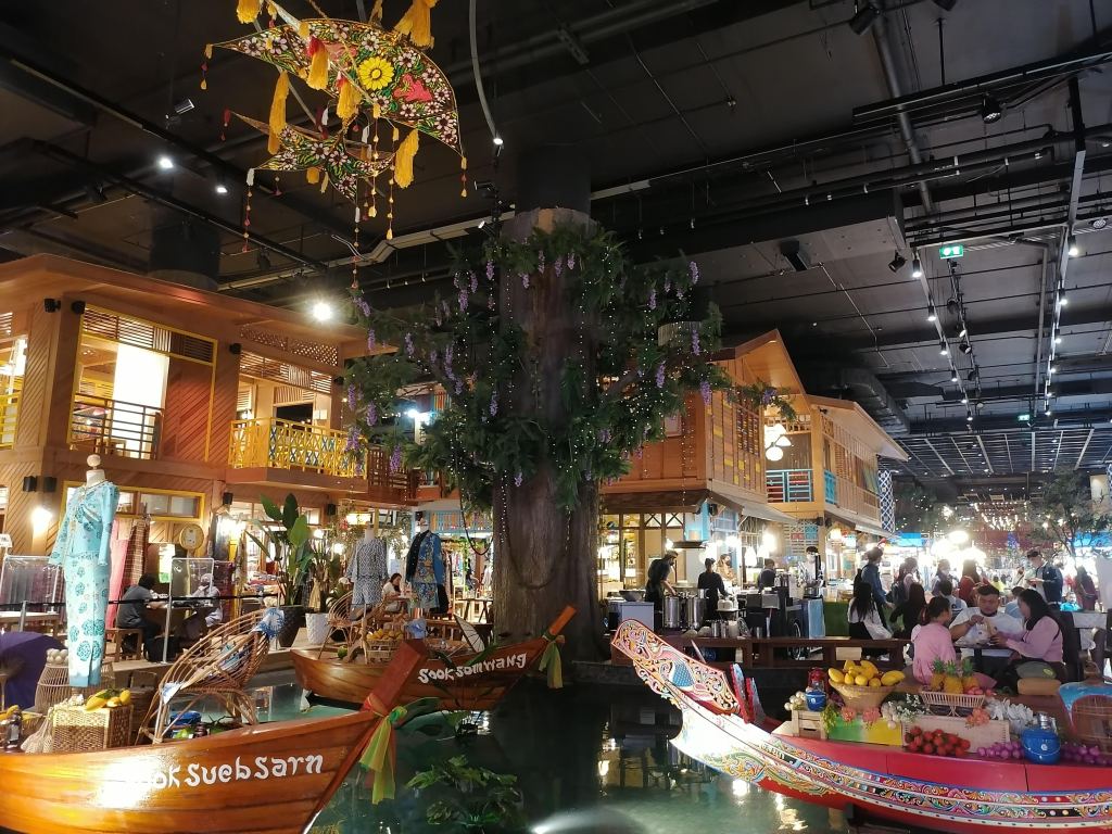 Täällä voit syödä terassiravintoloissa (normaaliaikoina ravintoloita on 40, pandemia-aikana vähemmän) ja shoppailla vaatteita, asusteita, matkamuistoja, leluja ja kosmetiikkaa. Voit myös huvitella suuressa maailmanpyörässä, kaksikerroksisessa karusellissa tai kummitustalossa (lippuhinnat ovat todella edulliset, euron luokkaa). Alueella on myös nukketeatteri ja Calypso Bangkok Theater, jonne voit varata viiden hengen pöydän. Laitureilta lähtee suosittuja risteilijöiltä, joihin voi ostaa lipun parin tunnin jokiajelulle ja buffet-aterialle. Kävin täällä sekä 2014 ja nyt joulukuussa 2021, ja paikkaan oli nyt tullut sekä uusia huvipuistolaitteita että koronan takia suljettu monia ravintoloita ja kauppoja.