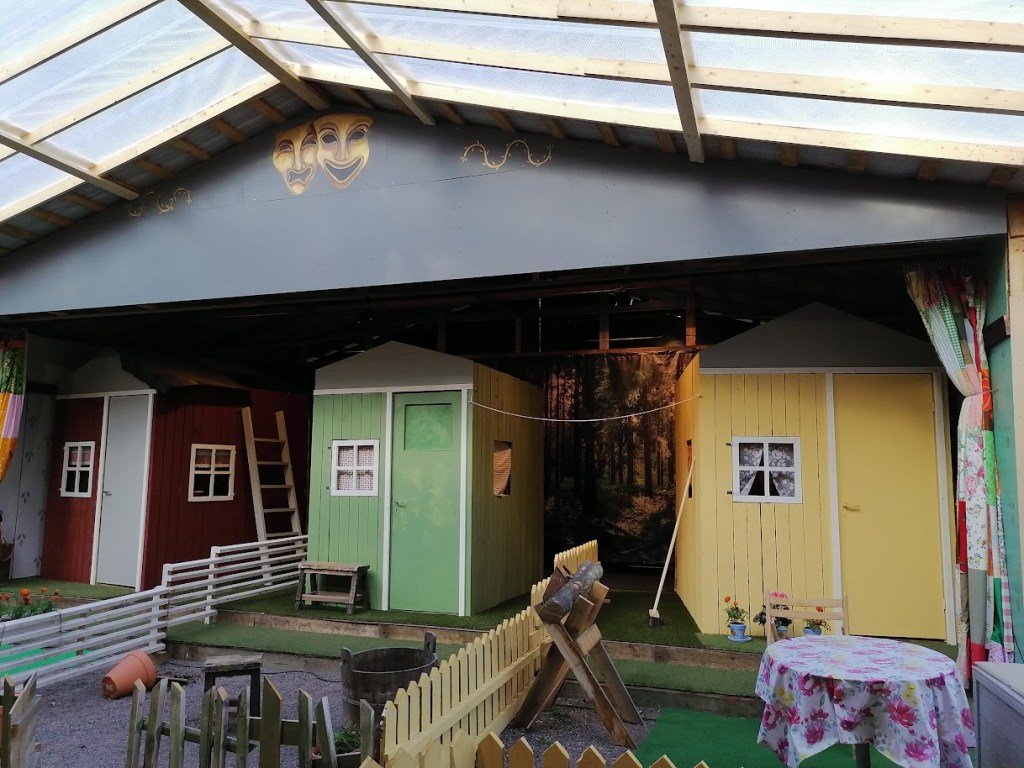 Kivinokan kesäteatteri sijaitsee idyllisesti metsän keskellä, ja kuitenkin aivan Helsingin ytimessä. Vieressä ovat Herttoniemen siirtolapuutarha, Kivinokan pienet ja suloiset kesämökit sekä uimaranta. Kulosaaren metroasemalle on tosin jonkin verran taapertamista. Eilen sää ei ollut tarpeeksi lämmin uimaretkeä ajatellen, mutta onneksi ei satanut. Sadekaan ei tosin olisi kauheasti haitannut, koska sekä teatterin katsomo että lava ovat katettuja.