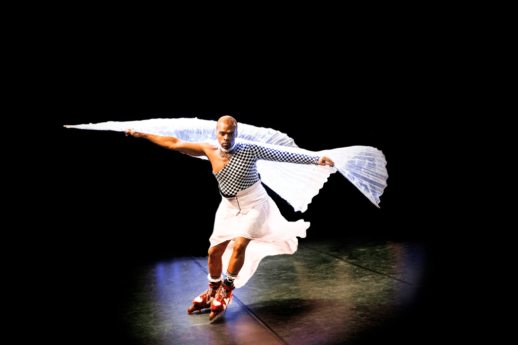 Tänä keväänä valmistuva vaatturi ja mittatilausompelija Kai Salo on tehnyt esitykseen ihanan ja herkullisen värikylläisen puvustuksen. Erityisesti vaikutuin pimeässä hohtavista balettitutuista, harpyjoijen hohtavista siipiviitoista, värikkäistä rullaluistimista ja sydämillä koristelluista lenkkareista. Puvustuksessa toistuu liisaihmemaamaisesti tai Twin Peaks -henkisesti mustavalkoinen sakkikuvio sekä suloiset värit punainen ja vaaleanpunainen.