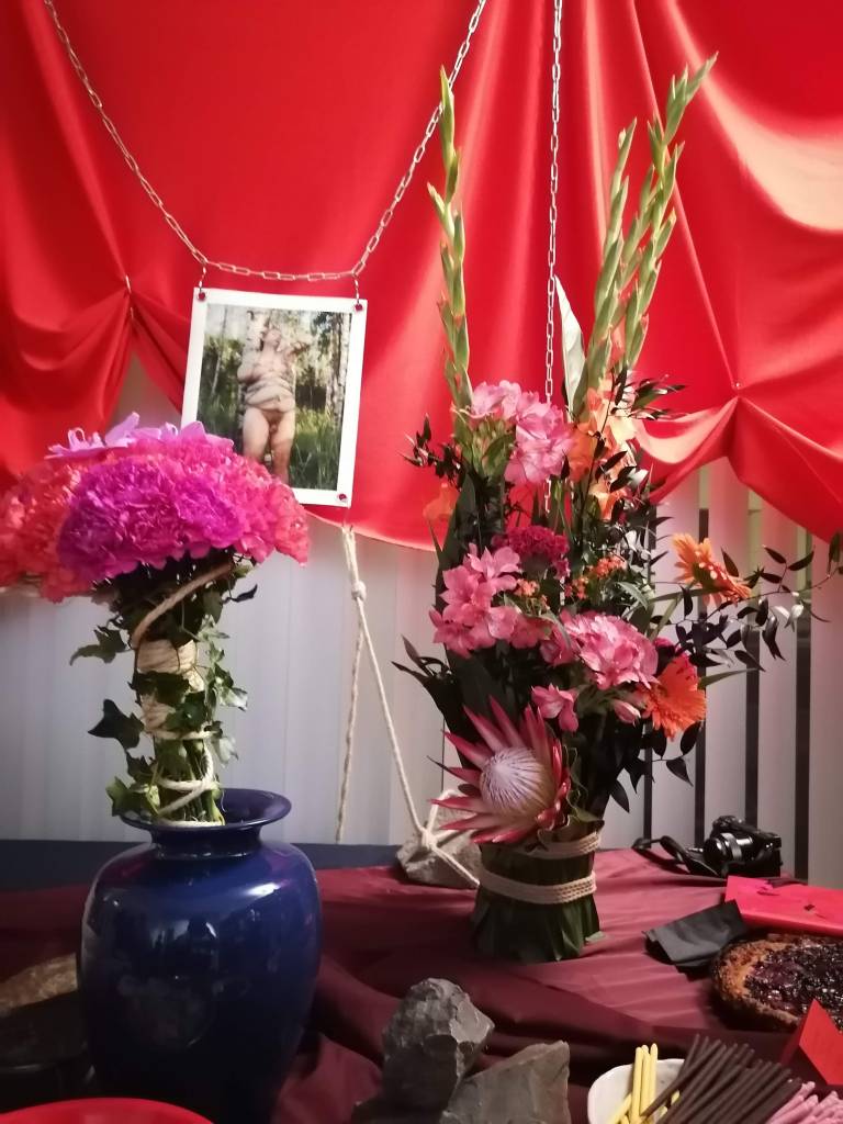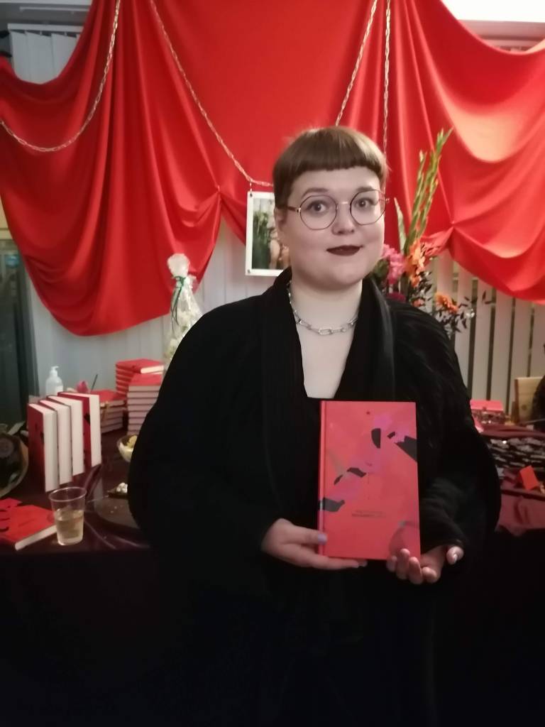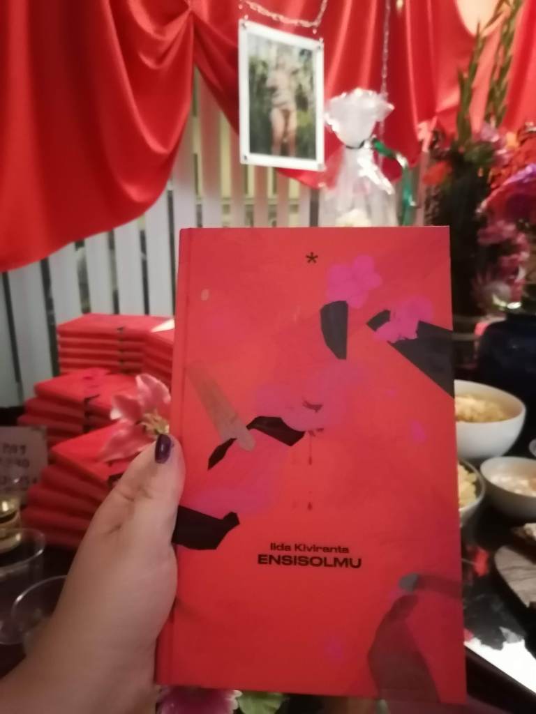 Olen tutustunut Iidaan Metropolian japaninkursseilla vuosina 2017–2019, ja yhteytemme on pysynyt. Opiskelimme kumpikin japanin kieltä ennen (eri aikaan) vaihtoon lähtemistä. Nykyään Iida on digitaalinen muotoilija, kirjoittaja ja sidontataiteilija. Sainkin myös kutsun Ensisolmun kirjanjulkkareihin syyskuun lopulla. Näin juhlissa ensimmäistä kertaa livenä kauniin sidontaesityksen ja pääsin juttelemaan sidonnasta useamman lajia harrastavan mukavan queer-ihmisen kanssa.