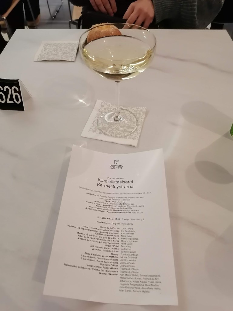 Kävimme nimittäin kokemassa Kansallisoopperassa ensimmäistä kertaa esitettävän oopperan Karmeliittasisaret. Karmeliittasisarten tarina on saanut inspiraationsa Ranskan vallankumouksen kauhuista selvinneen äiti Marie de l’Incarnation de Dieun muistelmista. Vallankumoushallinnolle katolinen kirkko edusti vanhaa valtaa, joka piti kitkeä pois. He kielsivät uskonnonharjoittamisen. Nunnat kuitenkin kieltäytyivät luopumasta uskostaan.
