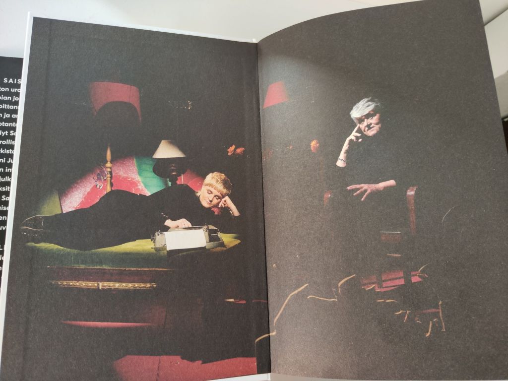 Olen nähnyt Saision usein näyttelemässä, nähnyt useita hänen käsikirjoittamiaan näytelmiä, lukenut muutaman hänen kirjansa (ainakin Elämänmeno ja Kainin tytär) ja nähnyt Betoniyö-elokuvan. Kuitenkin olen unohtanut teoksista todella paljon, ja nyt kuin luin aiemman bloggaukseni Valehtelijan peruukki -esityksestä KOM-teatterissa vuodelta 2019, niin olin näköjään jo esityksessä kuullut osan elämäkerran tapahtumista, mutta en enää muistanut suurinta osaa niistä.