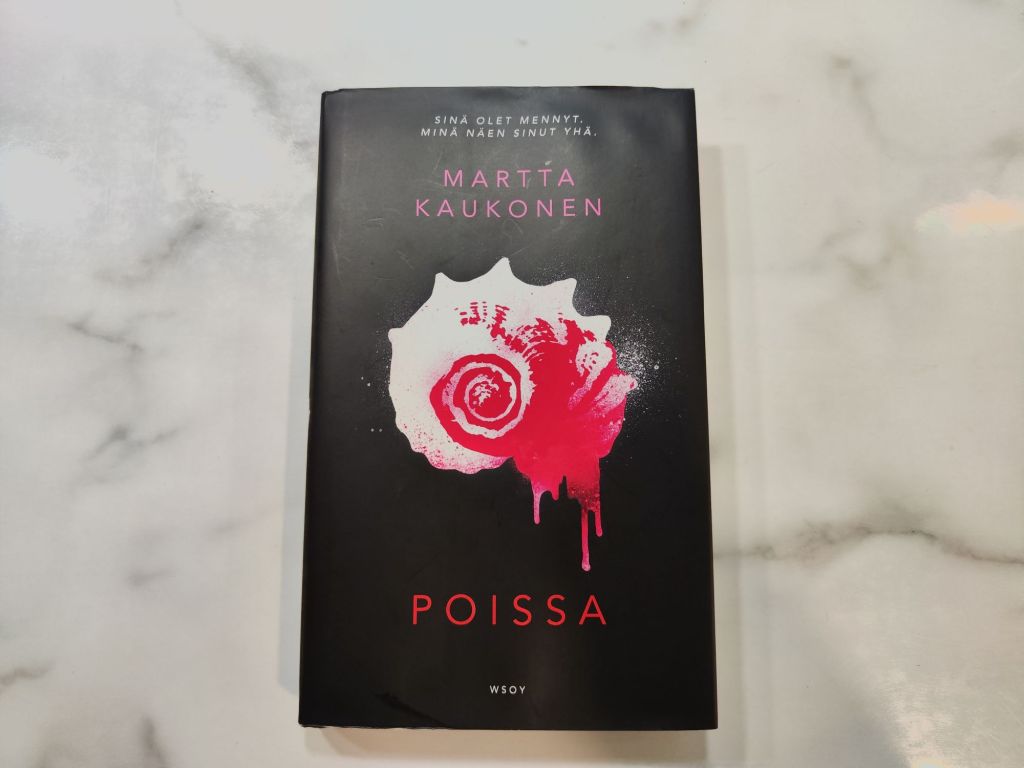 Pääsin osallistumaan toukokuun lopussa ystäväni Martta Kaukosen kirjanjulkkareihin, ja elokuussa hain uutuudesta arvostelukappaleen WSOY:n kirjakaupasta. Mulla valitettavasti viivästyi lukemisen aloittaminen, kun tarjottimellani on ollut niin paljon kaikenlaista. Poissa (WSOY 2025) oli kuitenkin koukuttava ja erinomaisesti kirjoitettu, ja sitä oli ilo lukea.