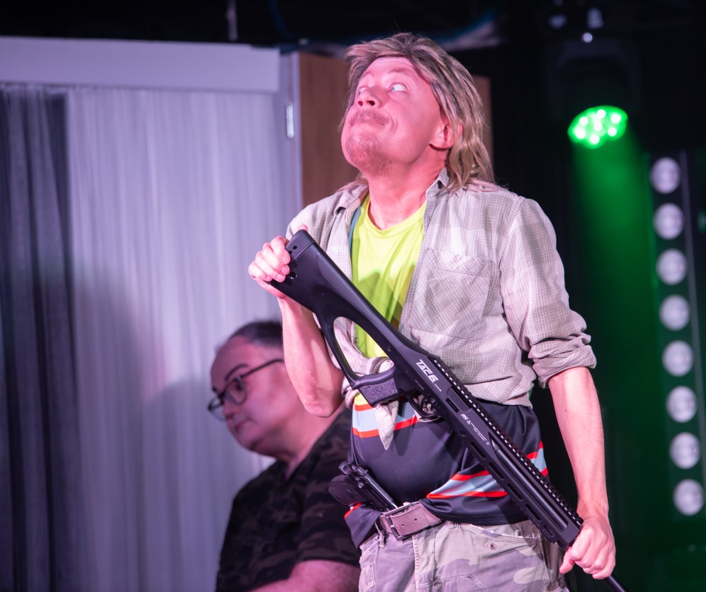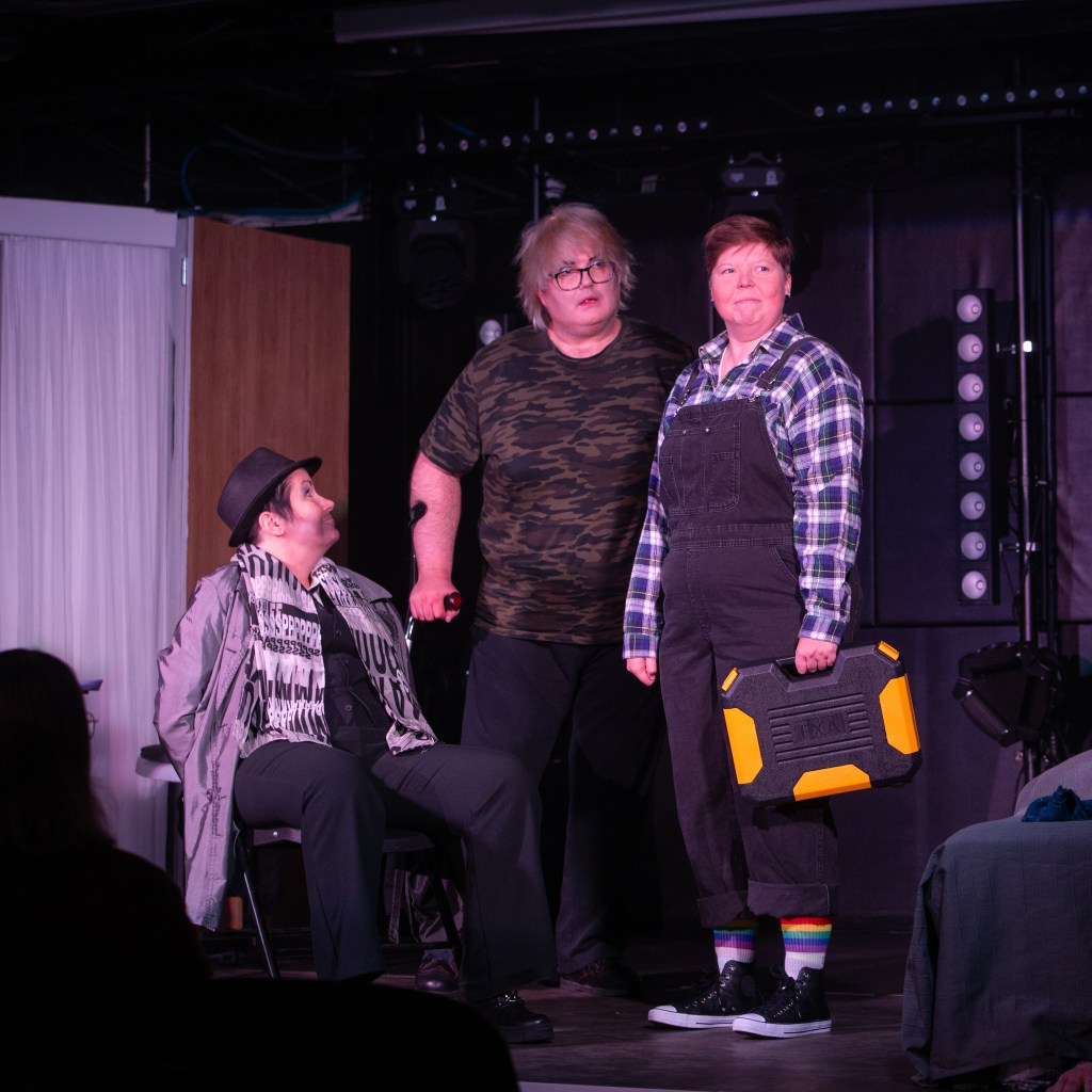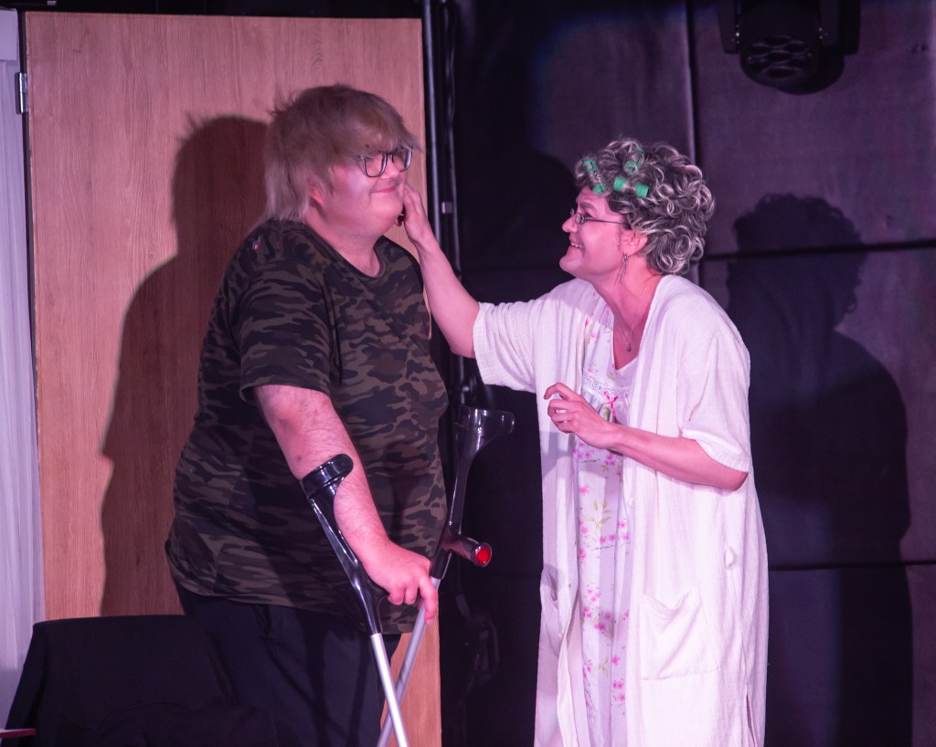 On myös hienoa, että näyttelijällä voi olla liikuntavamma ja sitä ei käsitellä esityksessä, vaan se on vain ominaisuus muiden joukossa. Pisteet myös siitä, että harrastajateatteri oli saanut niin aidon näköisiä aseita esitykseensä. Puvustus oli myös tehty huolella.