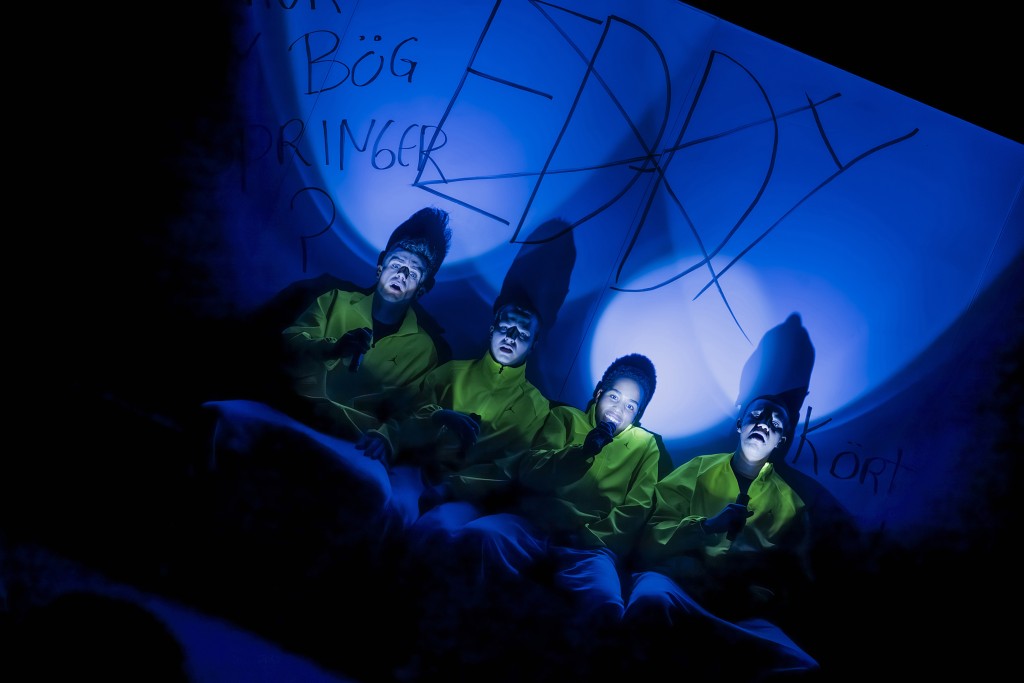 Näytelmässä oli muuten nykyajan teatterin suosima ja oikein mainiosti toimiva sukupuolisokea roolitus. Pia Runnakko esitti esimerkiksi Eddyn yrmyä isää ja Joachim Wigelius Eddyn kilttiä mutta tossun alla olevaa äitiä. Maria Lura Skrudland (TeaK) esitti kylän eri poikia, Eddyn lyhytaikaista tyttöystävää ja isosiskoa. Salomon Z. Patrick (TeaK) esitti useita kylän poikia ja Redaa. Lavalla nähdään tosiaan useampi näyttelijäopiskelija.